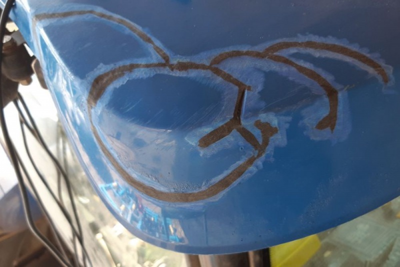 Střecha na traktor, oprava praskliny a díry.