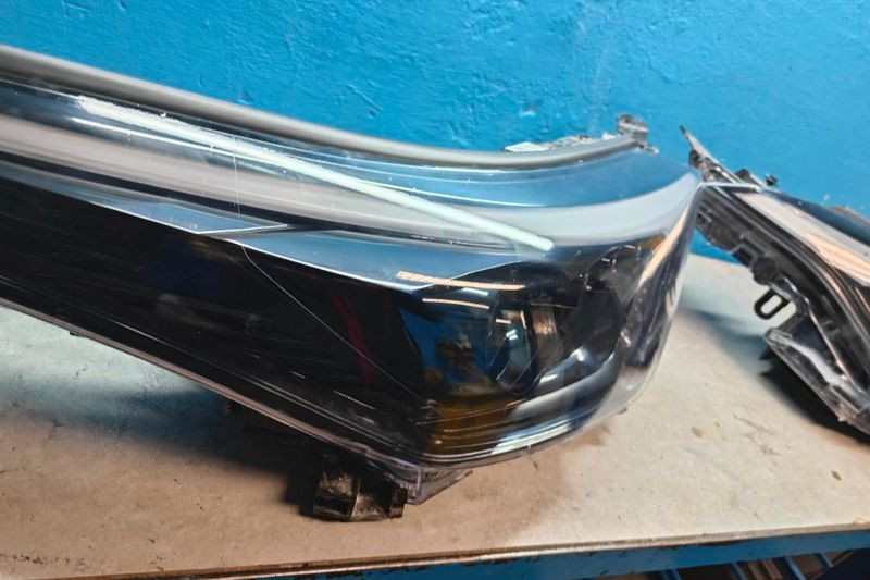 Přední světlo Toyota. Vážně poškrábané přední světlo Toyota, renovace předního krytu, po opravě je světlo zase plně funkční a provozuschopné.