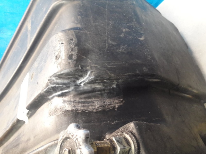 Špatně opravená palivová nádrž na traktor, odstranění a pořádná oprava.