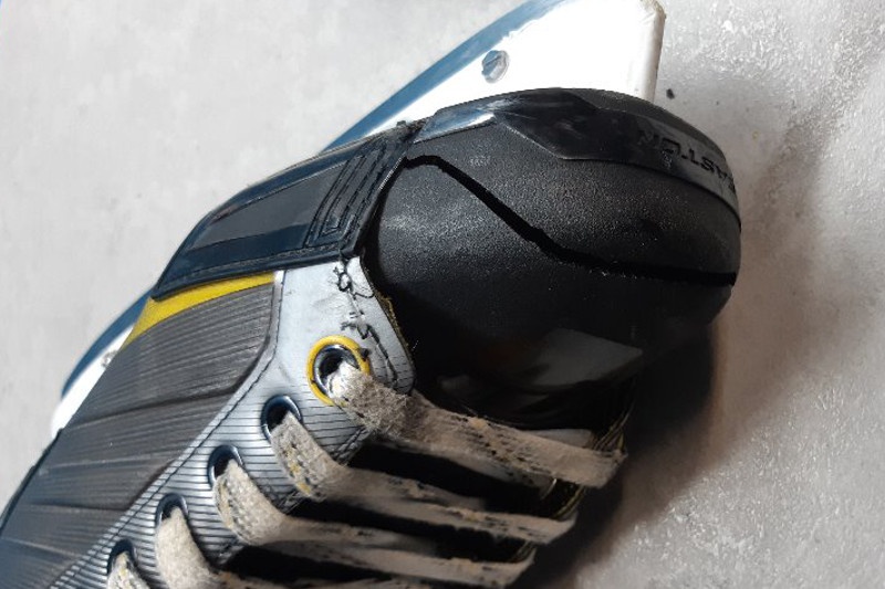 Oprava prasklé špičky brusle na led